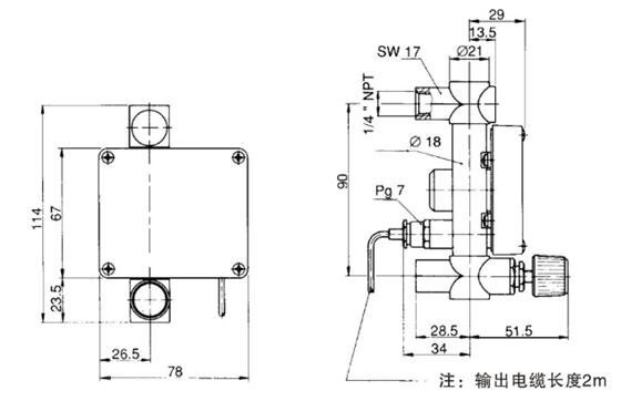 8、輸出:標準信號:二線制4~20mA(24VDC供電)