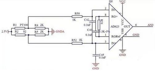下圖是PT100的信號調理電路,我在產品上用的,大家可以參考一下。