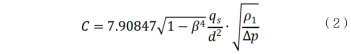 式(2)中:C一流出系數(shù);β一直徑比;/=d/D;qs一標(biāo)準(zhǔn)流量值;d一節(jié)流件的孔徑;ρ1一水的密度;△p-測量差壓值。