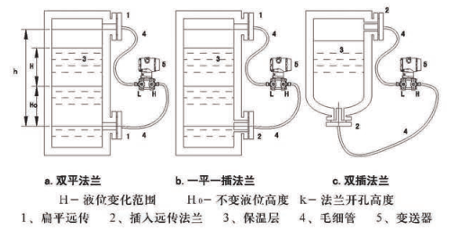 當H=0時,△P=ρgh,差壓變送器正壓室存在一個靜壓力,壓力大小為ρgh,使其輸出電流信號大于4m A。