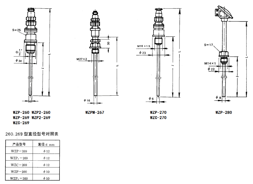 | WZP-260 | Pt100 | 0-100 | < 30S | 1Cr18Ni9Ti |